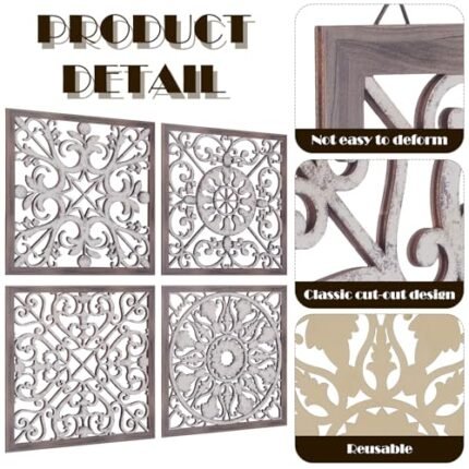 Tatuo 4-Piece Wood Art Set – Farmhouse Decorative Panels for Living Room, Kitchen & Dining (Brown & White)