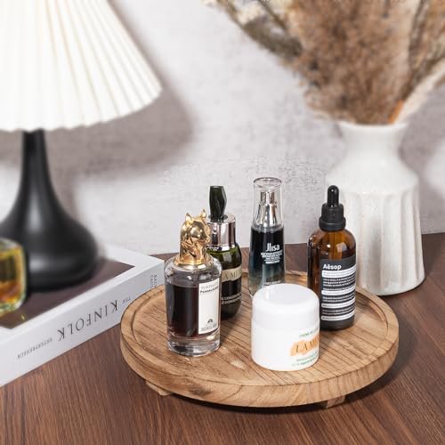 10″ Round Wooden Tray – Farmhouse Decor for Bathroom or Kitchen, Ideal for Soap, Perfume, Candles & Sponges – Brown