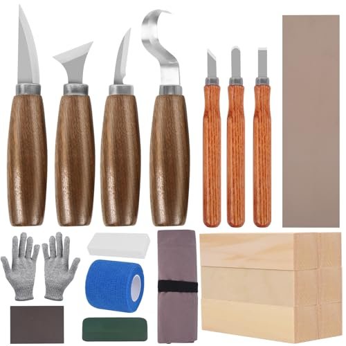 26-Piece Wood Carving Kit for Beginners: Tools, Knives, Gloves & Blocks for Spoon & Bowl Making