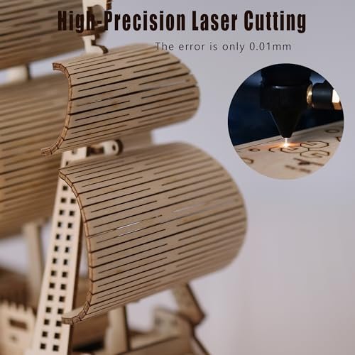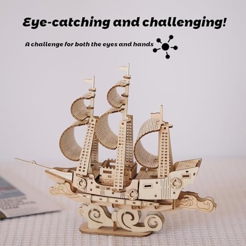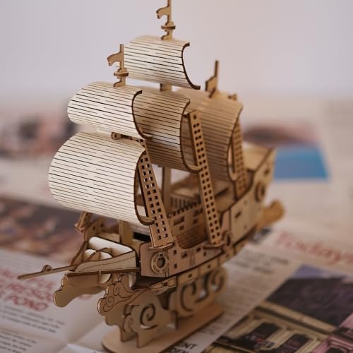 3D Wooden Puzzle Model Boat Kit by Suerte for Adults & Beginners – DIY Wooden Sailboat Assembly Gift Under $70