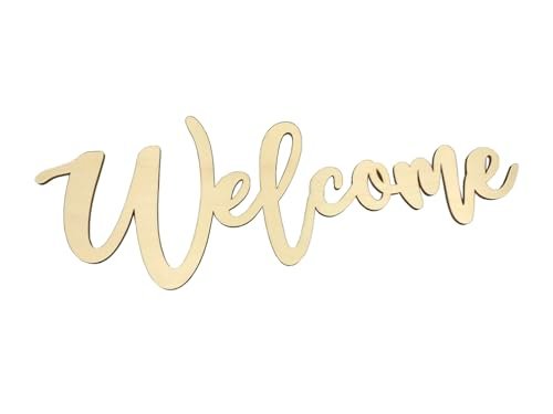 Enhance your DIY woodworking projects with this set of 5 large 14-inch wood welcome cutouts! Crafted from high-quality wood, these cutouts are both lightweight and sturdy, featuring smooth surfaces that are ready for your creative touch.