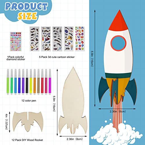 Ignite your child’s creativity with our DIY Wood Rocket Set! This set includes 12 wooden rockets, each waiting to be transformed with 12 vibrant color pencils, 5 packs of 3D cartoon stickers, and 1 colorful diamond sticker. Perfect for DIY woodworking projects, this set is designed to meet the imaginative needs of kids and students alike.