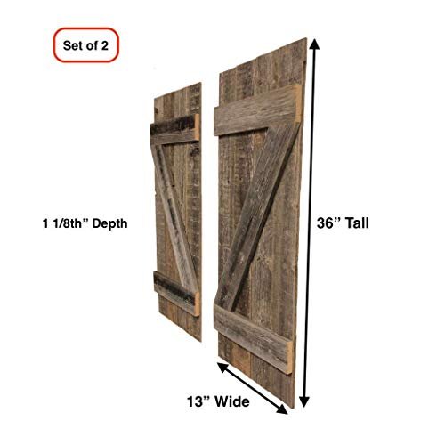 - Authentic Craftsmanship: Handcrafted from reclaimed wood, each shutter features unique imperfections—like nail holes and knots—that enhance its character.