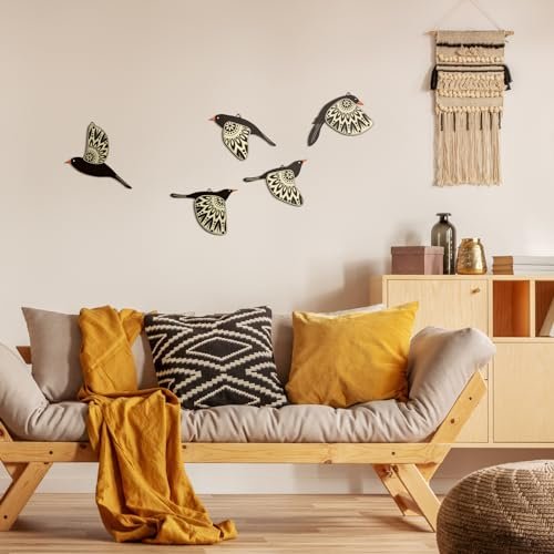 Barydat 5-Piece Wooden Bird Wall Art – Rustic Flying Birds Decor for Living Room, Bedroom, Kitchen, Office (Black) – Perfect Gift Idea