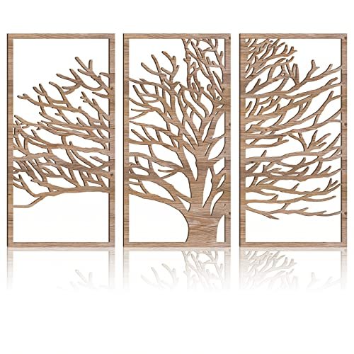 BINCUE 3-Panel Rustic Tree of Life Wall Art – Boho Decor with 3D Hollow Design for Kitchen, Bathroom, & Living Room