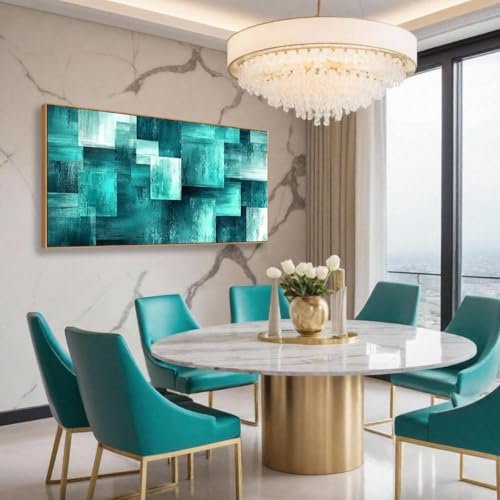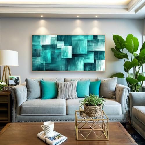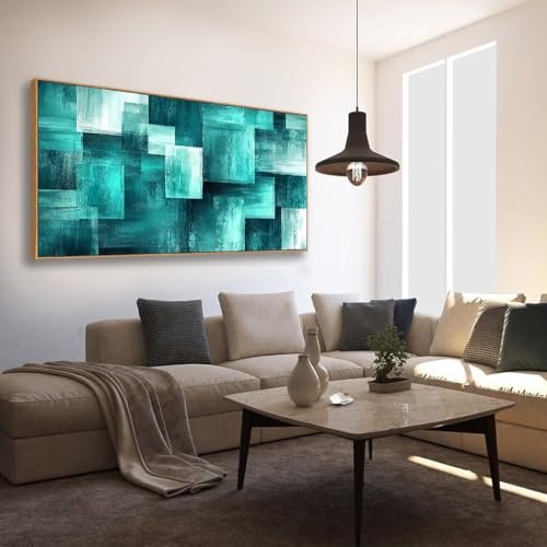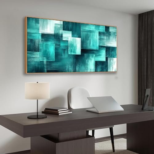 BQVCT Teal Geometric Canvas Print – Modern Abstract Wall Art in Wood Frame for Living Room and Bedroom Decor, Under $70