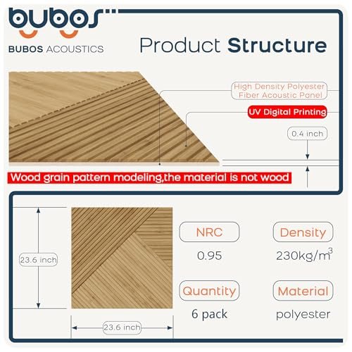 BUBOS 6-Pack Large Acoustic Panels – 72×48 Inches Soundproof Wall Panels with Decorative Wood Grain Design, Self-Adhesive for Studio, Office, and Home, Log Color