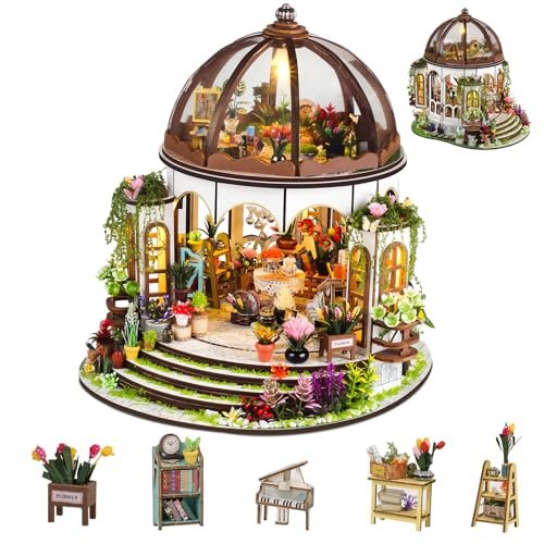 DIY Miniature Green Garden House Kit: Complete Dollhouse Set with Furniture & LED for Adults and Teens – 3D Wood Craft Model for Plant Lovers, Perfect Birthday Gift Under $70
