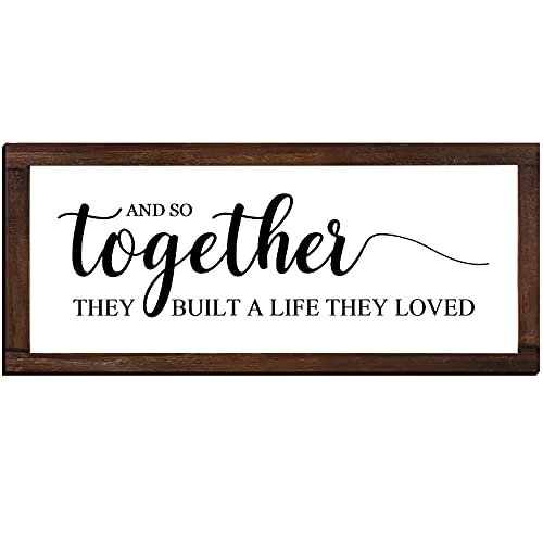 Jetec Together They Built A Life They Loved – 14×6.4 Rustic Farmhouse Wall Decor Framed Wood Sign