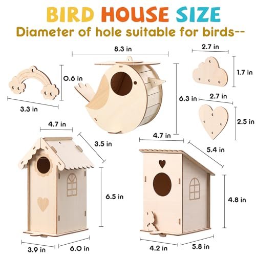 JMMICO 3-Pack Birdhouse Kits for Kids Ages 8-12 – Wooden DIY Painting Arts and Crafts, Build & Decorate Birdhouses and Wind Chimes for Summer Fun, Great DIY Gift for Boys and Girls Under $70