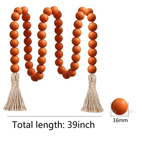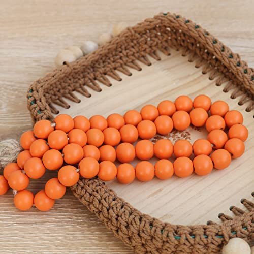 Meplait 39” Wood Bead Garland with Tassels – Boho Chic Farmhouse Decor & Versatile Prayer Beads (Orange)