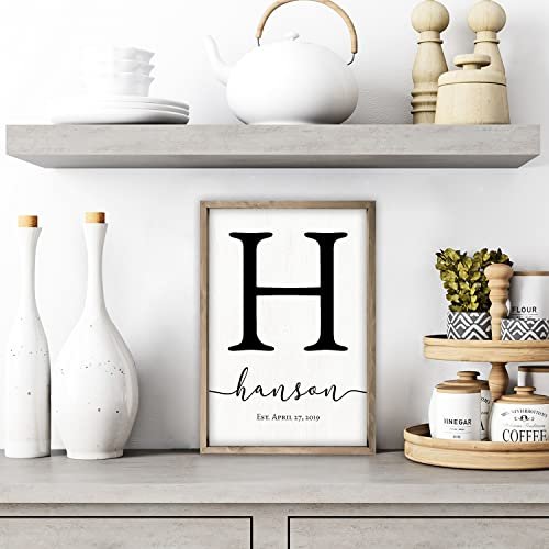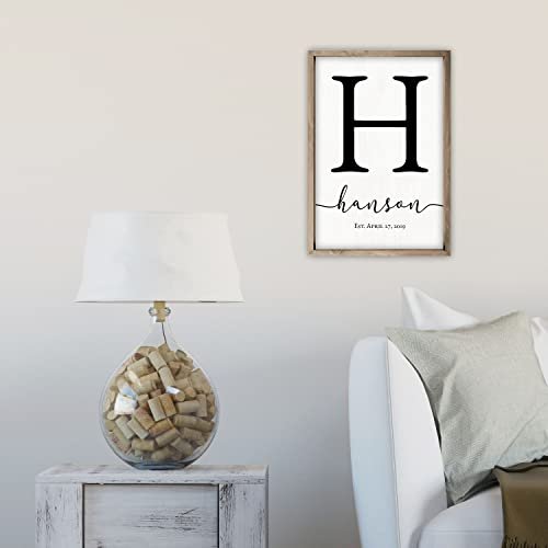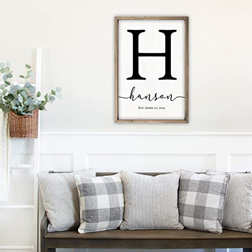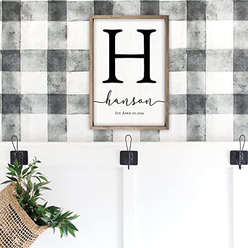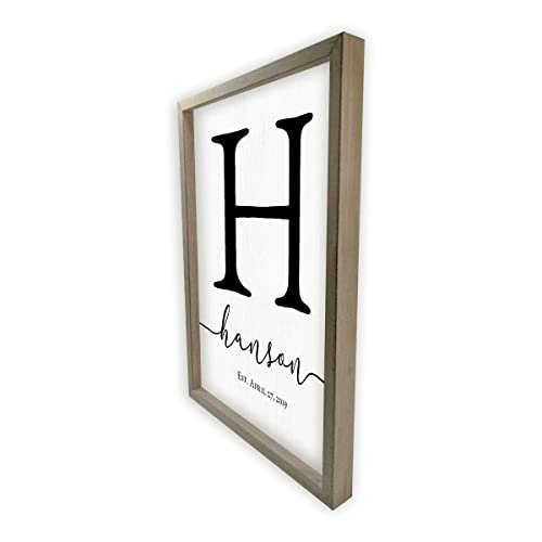 Personalized Wooden Family Name Sign with Frame – Four Sizes Available (12″ x 18″, Weathered Grey Frame, White Background)