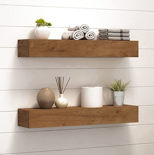 Be the first to review “ROOREVO 2-Pack Rustic Wood Wall Shelves (Light Walnut, 24-Inch)”