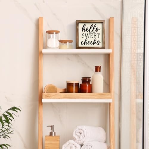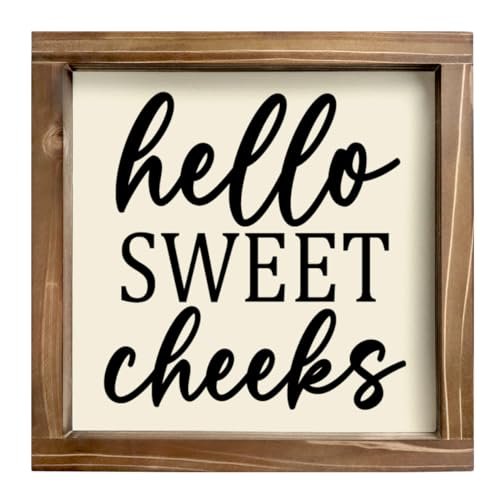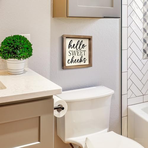Rustic Farmhouse Bathroom Decor – Adorable ‘Hello Sweet Cheeks’ Wooden Sign, Humorous Wall Plaque for Restroom & Toilet Shelves, Perfect for Home or Apartment Under $70