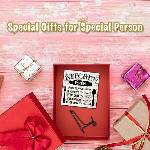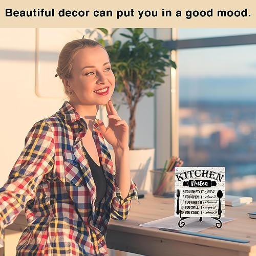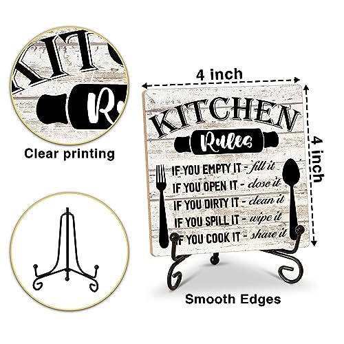 Rustic Wooden Kitchen Rules Sign with Stand – Home Decor for Living Room & Dining Table (31) Under $70