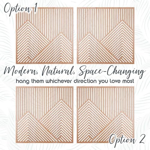 SnugLife 2-Piece Wooden Mountain Wall Art – Modern Minimalist Forest Decor for Living Room and Bedroom – Large 23.5″x23.5″