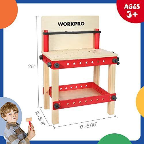 WORKPRO Kids Wooden Workbench Kit – Creative Building Toy Set for Toddlers 3+ – Perfect Educational Gift